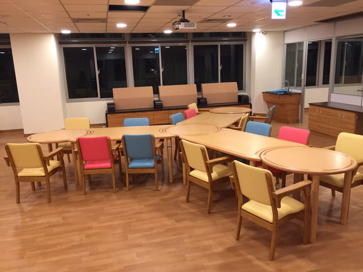 此款桌子專為高齡者與輪椅使用者設計。採用天然木材製作,觸感舒適。2種造型搭配可組合出各式各樣的桌面空間。特別適合使用在設施機構中,可因應餐會或團康活動,依人數需求,隨時創造出適當的活動空間。
