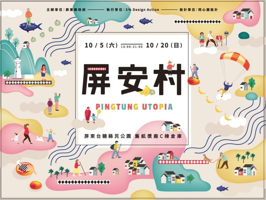 由5% Design Action社會設計平台楊振甫博士擔任策展人,以屏東「安居樂業」為訴求,出發點,嘗試回應目前台灣在「全齡共融、失智友善」的需求及挑戰,重新定義日常社區可看到的場景與人物,思考健康促進、青銀共創、失智症在地照護的全新可能。