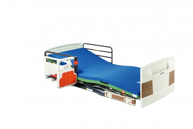 ►利用膝蓋移位,可以自動鎖定的床用扶手。